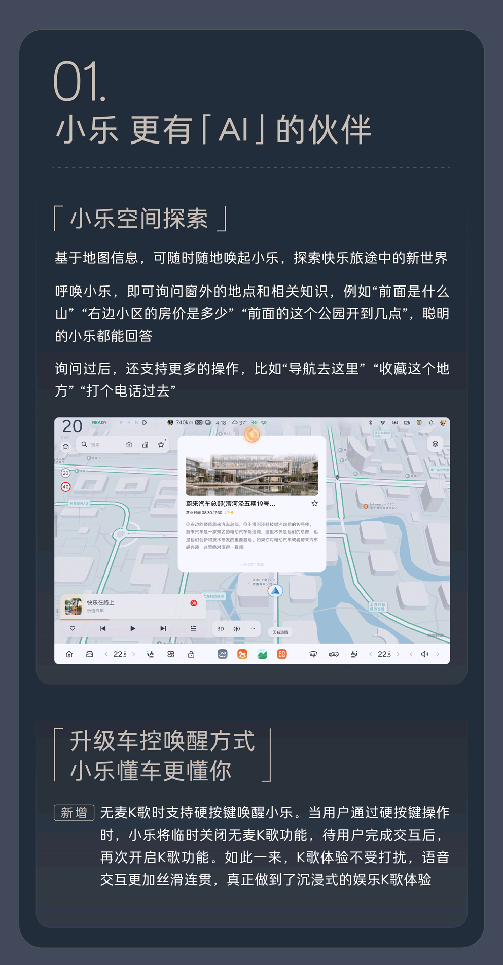 更让我惊喜的是空间探索的功能,直接跟小乐说地图上周围的建筑和景点,小乐都能及时回答,智慧场景的使用方便了解周围的风土人情,又超级便利生活和出行的需要。出去露营也能知道当前的海拔高度,真的很方便。