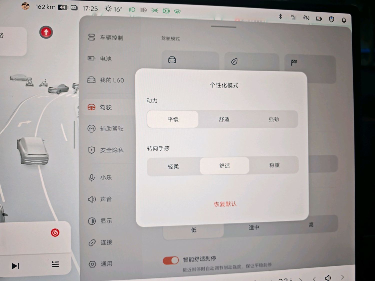 个人感觉 动力平缓+转向舒适 比较好用,适合大部分路况;湿滑路面模式体验更为厚重,很有质感。小乐真是越来越感觉好开了。