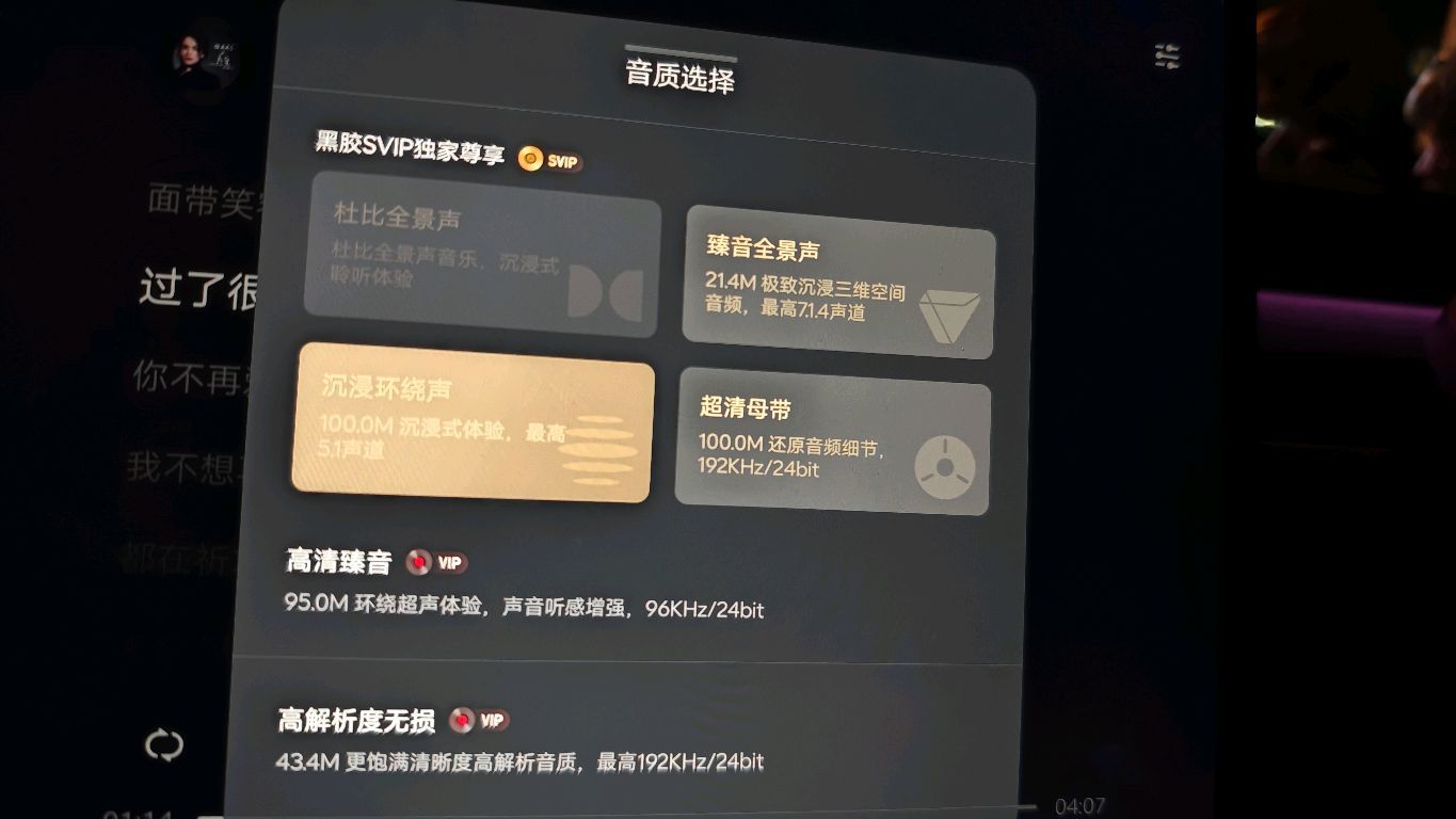 这套 EQ 下,网易云的音质选择(沉浸环绕声)
