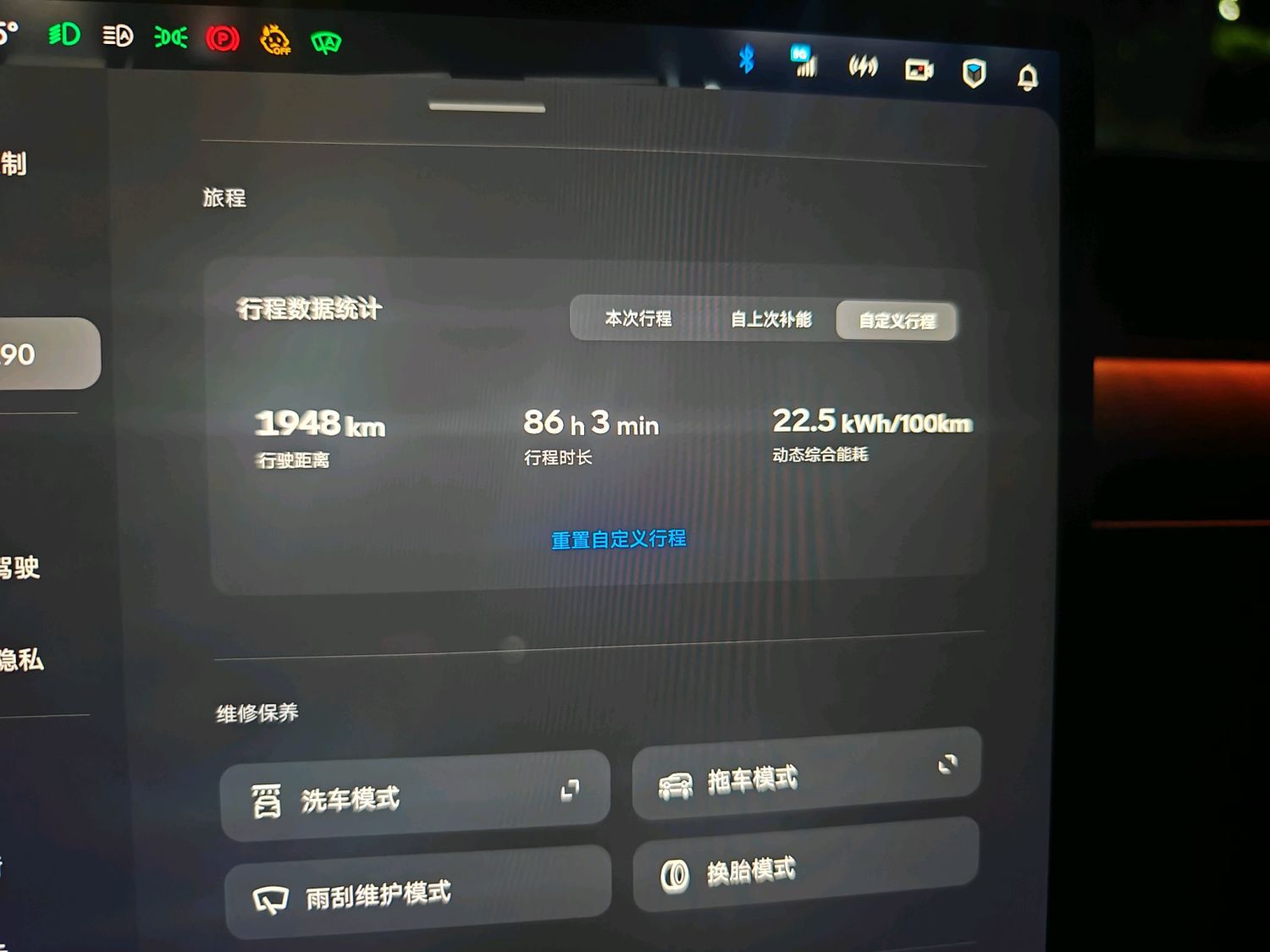 天气15度左右,早晚要开暖风,大概这个环境,高速智驾定120,能耗就是25,也就是满电最多240km。实际换电基本都是93%电量,也就是高速最多220km。城区是比较低了,总之我2000km,85%高速,能耗如下图所示。