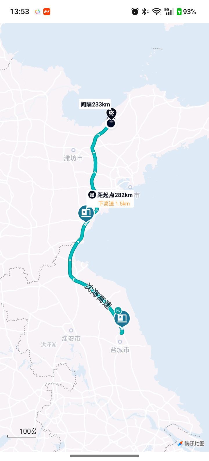 第二:看看下高速换电。沈海高速从盐城到我家500km没有高速换电站,但是在日照高速口下面有一个,离高速口仅1.5km。